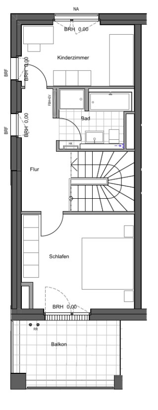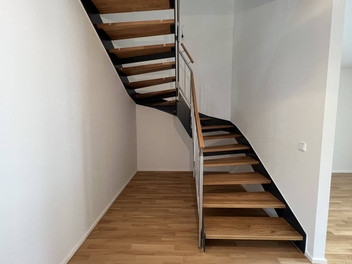 Die Aufteilung schafft eine natürliche Trennung zwischen Wohnen und Ruhe: unten aktiv, oben entspannt. Ein Zuhause für Menschen, die kein Standard-Grundriss-Wohnen suchen, sondern einen Ort mit Charakter und Persönlichkeit.