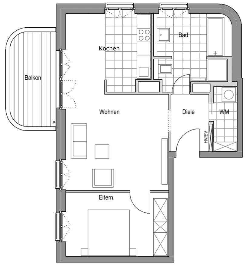 Mit einem Tageslichtbad, einem schönen Balkon mit Blick in den Park, hochwertigen Ausstattungsdetails und einer modernen Einbauküche lässt es sich im Europaviertel fantastisch wohnen.