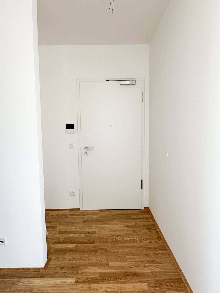 Schon beim Eintreten zeigt sich die durchdachte Struktur der Wohnung. Eine Nische im Eingangsbereich schafft Platz für die Garderobe und sorgt für Ordnung, ohne Raum zu verlieren.